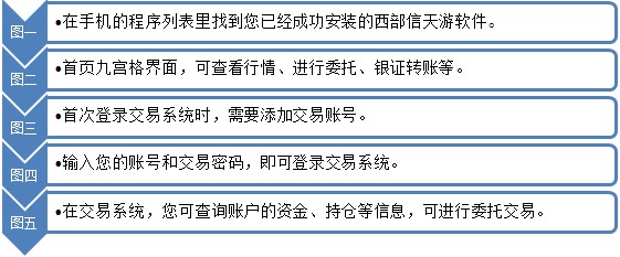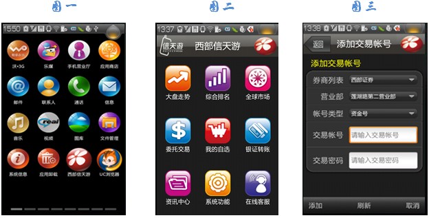 西部证券交易系统app是基于移动通信网络的数据传输功能,用手机进行股票信息查询和交易的无线炒股应用系统,让一个普通手机成为综合性的股票处理终端。手机炒股与传统交易方式相比,优势在于只要手机在通讯网络覆盖的范围内(可以收到信号)就能够查看行情、发出委托。比较电话委托的“堵单”和网上交易的“线路连接不上”,手机炒股在下单速度和线路通畅的可靠性上更胜一筹。