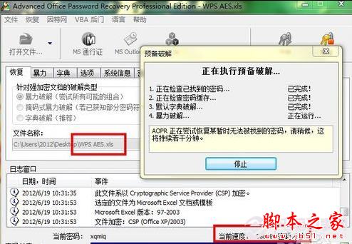 WPS表格(用途相当于Excel)虽然提供多种加密方式,但其中的XOR加密方式在Advanced Office Password Recovery里就形成虚设。可能是Advanced Office Password Recovery已经掌握了怎么完美破解XOR加密方式的方法,否则不可能做到无论你设置什么密码,都会被瞬间打开!