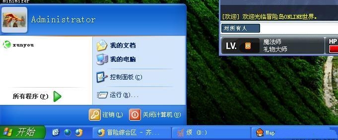 好了,根据上面的图文教程就可以实现冒险岛双开了,其实很简单,就是使用WINDOWS键+L键"切换用户",再另一个用户,使用V3这一双开工具,运行另一个盘的冒险岛程序就可以了。