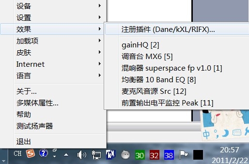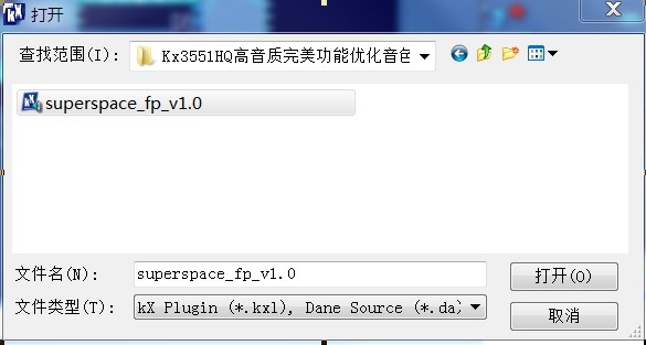如果该文件无法双击注册,可用鼠标右键点击任务栏右下角的kX图标,在弹出菜单中选择“效果”,然后点击“注册插件”,在弹出的窗口中找到superspace_fp_v1.0,选择其并打开。