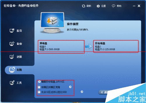4、大小不一样硬盘对拷时,注意下图画横线选项:你可根据自己的情况做相应调整。之后点击“开始克隆”