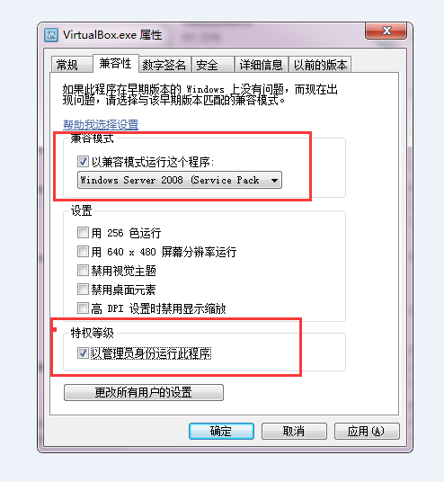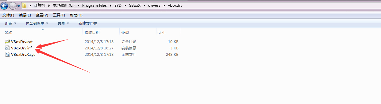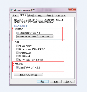 一:打开C盘这个文件,路径是:C:\Program Files\SYD\SBoxX,找到如下这2个文件,然后右击属性,更改下兼容性就可以了,文件名分别为:VBoxManage.exe和VirtualBox.exe