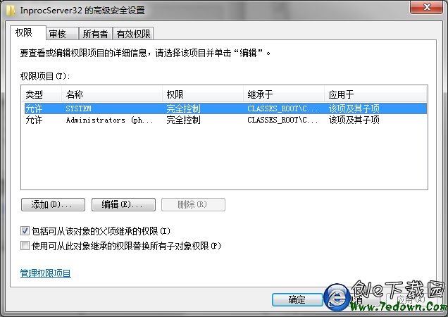 2、 InprocServer32->权限会弹出如下框: