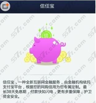 在网络被各种叫停了以后,支付宝推出全新的产品,信任宝,根据该产品的描述,信任宝是由金融机构依托支付宝平台,根据网购信用专属定制,最长38天免息期。信任宝