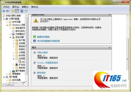 在Windows 7系统中,新增加了一个“AppLocker”(程序锁定)功能,它通过规则限制的方法控制使用我们电脑的用户只能运行指定的程序,安装指定的软件,从而 保护了系统和的目的。如,我们不想让其他用户在使用自己电脑时在系统分区中乱装软件,这样我们可以通过“AppLocker”来锁住该分区。