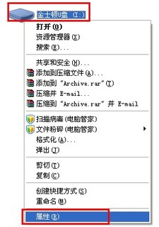 1.打开我的电脑 - 找到并选择到u盘盘符 - 点击鼠标右键 - 属性,如下图所示: