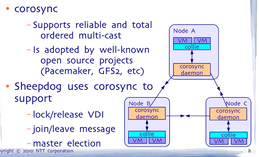 2. corosync通过提供一个CPG API来提供服务。sheepdog