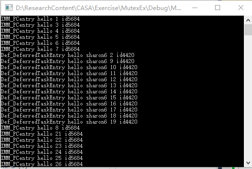 实现代码:线程IMM_PCentry和Def_DeferredTaskEntry交替运行。本程序并未实现同步,只是简单的多线程操作。windows多线程编程