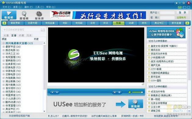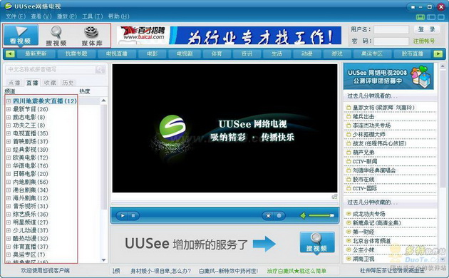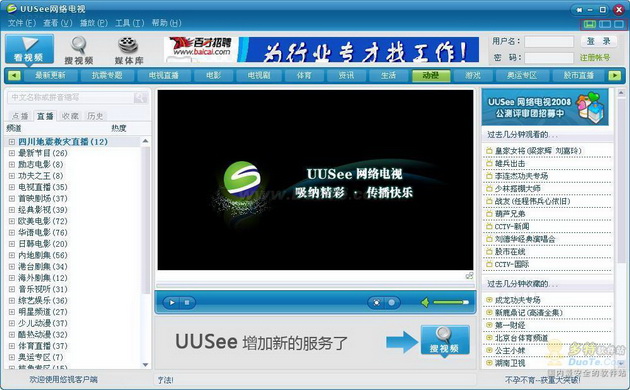 相比旧版本而言,UUSee网络电视2008把常用的内容分类放在了视频画面的上方,通过点击就可以查看每一个分类的具体视频内容,非常方便。
