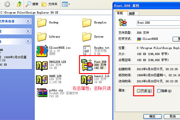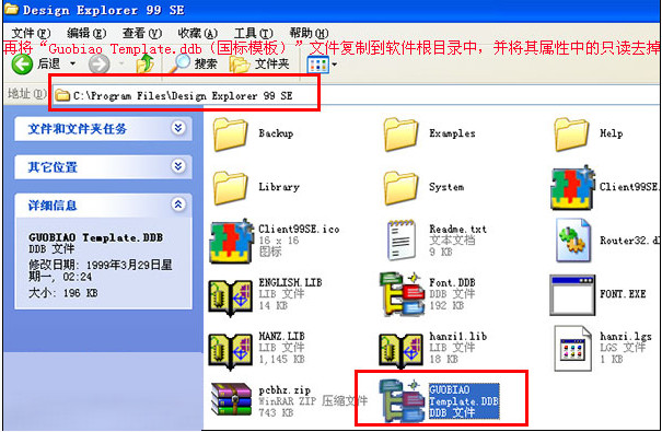再将“Guobiao Template.ddb(国标模板)”文件复制到Design Explorer 99 se 根目录中,并将其属性中的只读去掉。