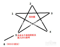 在1房间打完所有怪物后,会出现2阵风,一阵能把玩家吹到3房间,一阵能吹到4房间。造梦西游3水下迷宫怎么走(详细见图五角星线头指向,以此类推)