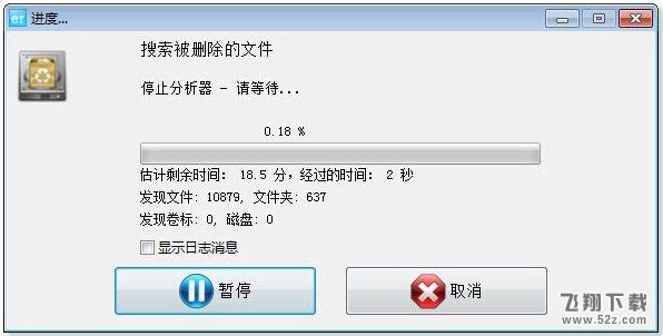 正在扫描: 取决于您的磁盘的大小,扫描过程也可能需要几个小时! 您也可以选择在扫描窗口查看日志信息,如果您需要对扫描做任何故障排除的话。