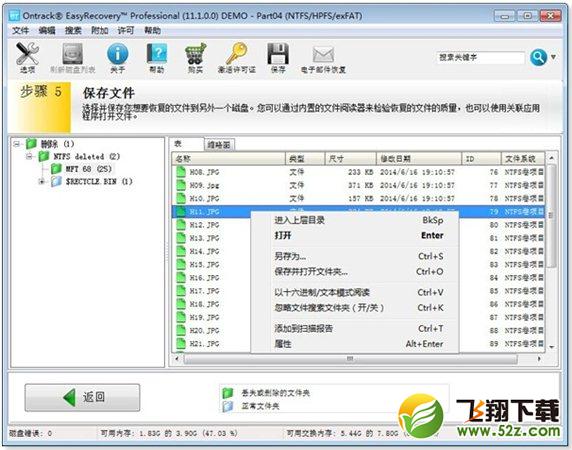 步骤 5: 选择并保存您想要恢复的文件到另一个磁盘。 您可以使用内置的浏览器或者用和文件相关联的应用程序打开文件,来检查被恢复的文件的质量。