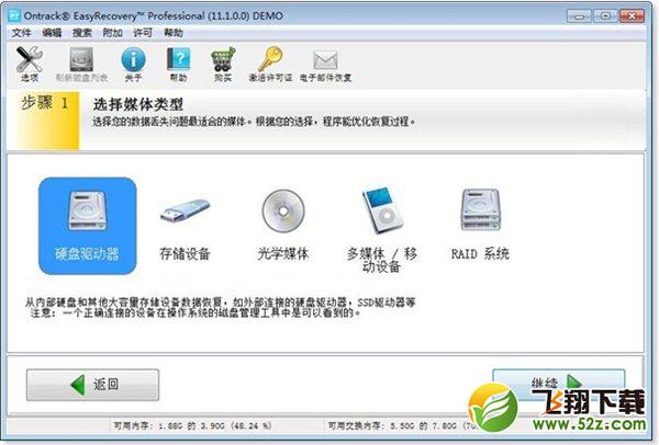 2、步骤1: 选择最适合您的数据丢失问题的存储介质。
