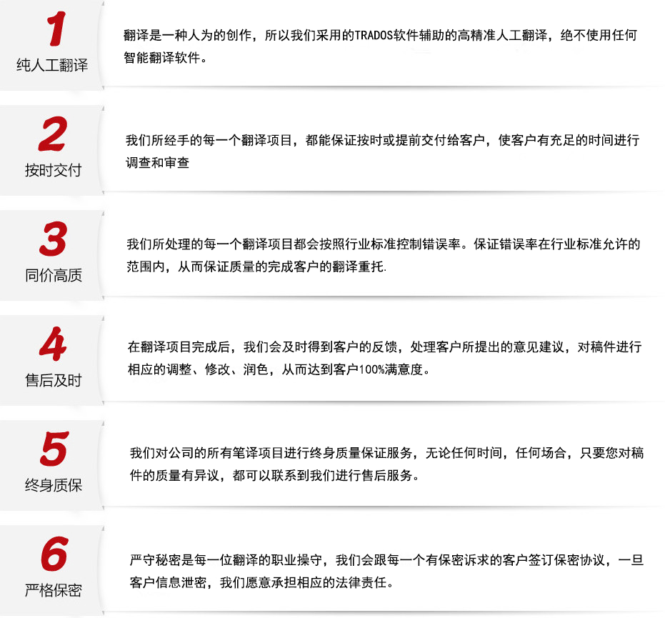 承诺放心翻译服务:作为负责任的权威翻译公司,无论咨询、执行、售后服务天使都竭尽所能。在帮助企业解决翻译难题的同时,更愿成为企业的忠实朋友,k奎思承诺同等质量下最低价格和无限期售后服务。