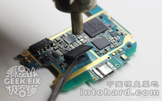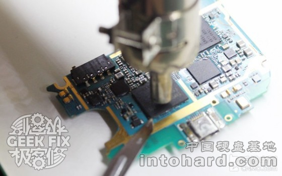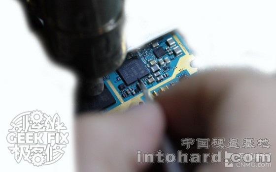 前面提到的两种修复方法都有一个大前提,那就是字库芯片本身没有出现物理损坏,如果确实已损坏,那就需要更换字库芯片。为了能让大家了解维修的,极客数码维修工程师阿良也现场为我们进行了更换字库的演示: