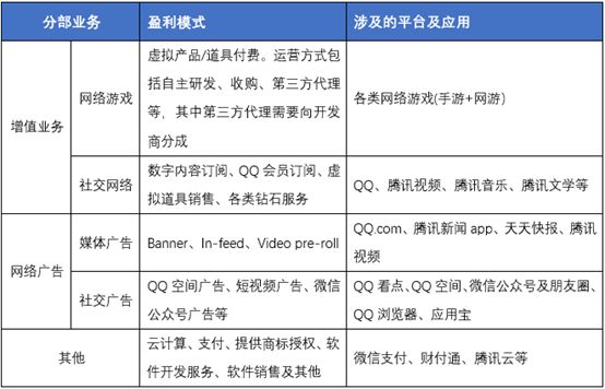 表3-1:腾讯的盈利模式