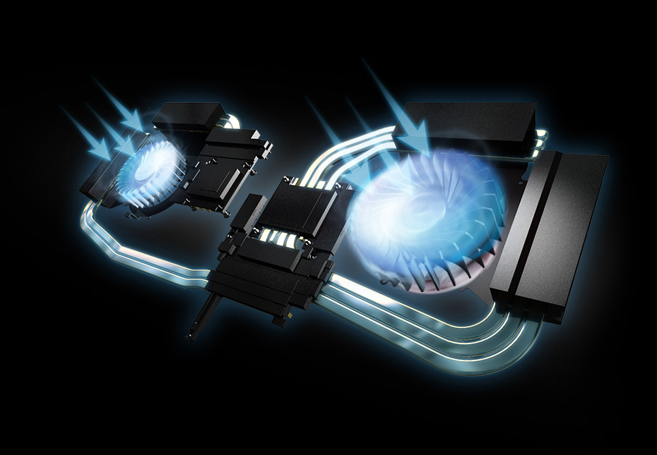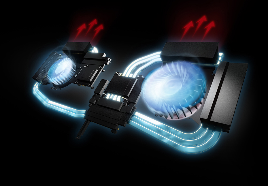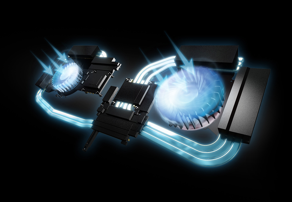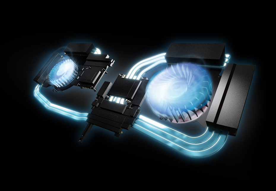 Heat is the most original element on earth. It’s pure physics that more energy will generate more heat. Cooling is therefore a knotty task to tackle with. Cooler Boost Titan consists of dual enhanced fans, the Whirlwind Blade. Each fan has 29 blades, increasing 30% more airflow at same RPM. Independent thermal solution on both CPU and GPU with a total of 7 heat pipes make sure that heat doesn’t pile up on either CPU or GPU, so that both can deliver its best under extreme gaming.