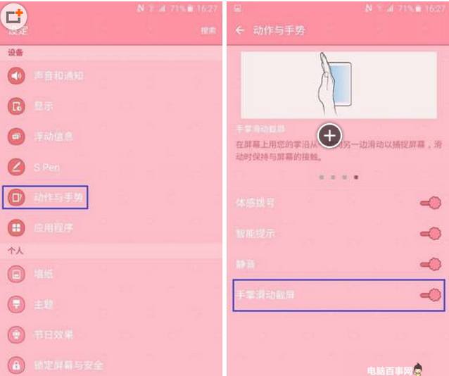 三星Note5截图方式二:手掌手势截屏
