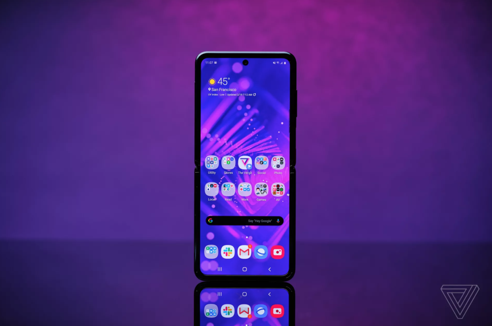 在软件方面,Z Flip在Android 10的基础上运行三星的一个用户界面定制。三星为了指出一个用户界面的双屏功能,放置了一个滑动窗口小配件,让顾客更容易打开另一个应用程序。这很好,但我更喜欢Galaxy手机上最特色的edge屏幕功能。