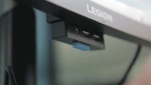 显示器中心 LEGION 标志下也有一个 USB 符号,其实也就提醒了此处还藏着剩下的两个 USB-A 3.0 接口。