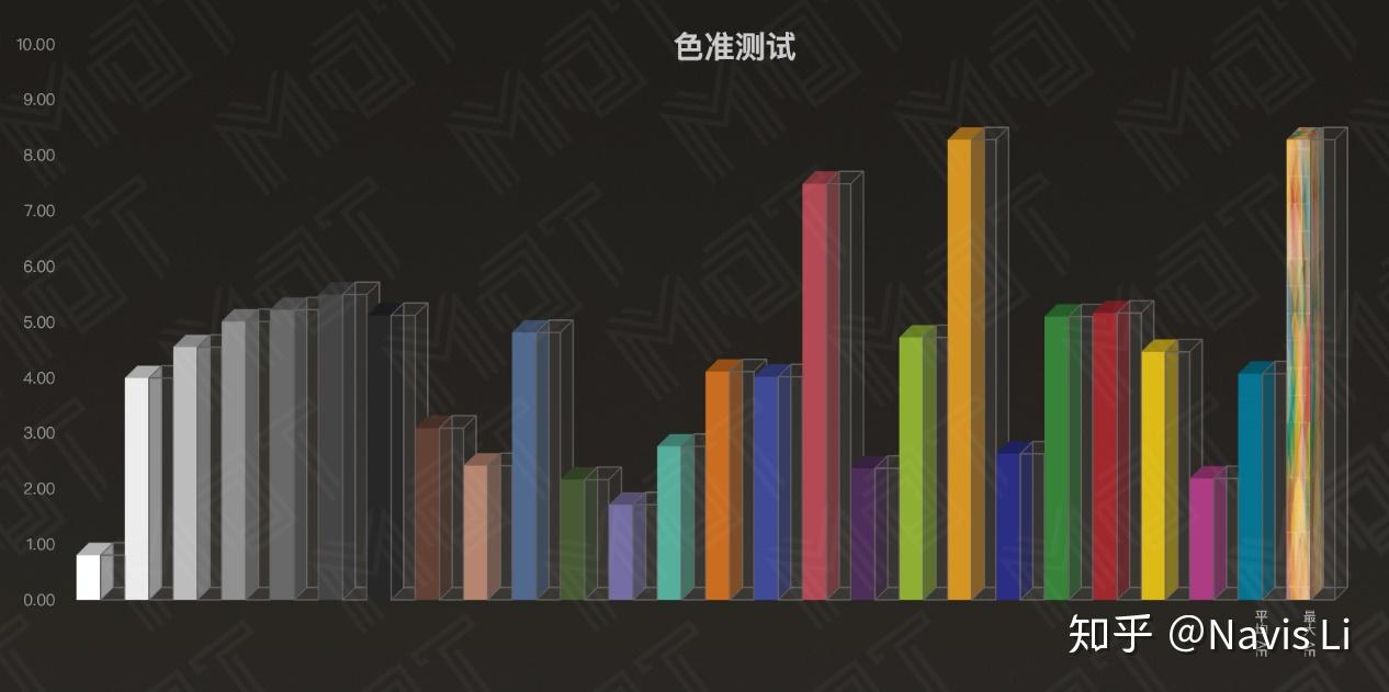 相对于普通屏幕测试只测色温,MDT 将 Du’v‘ 偏离加入屏幕白点准确性测试环节,因为传统的色温测试只能体现一块屏幕的冷暖而不包括发绿或者发紫,一块明显偏蓝的屏幕也可以是 6500K 标准色温,而通过 Du’v‘ 偏离就能反应屏幕还有没有单纯通过色调无法考量的偏色。