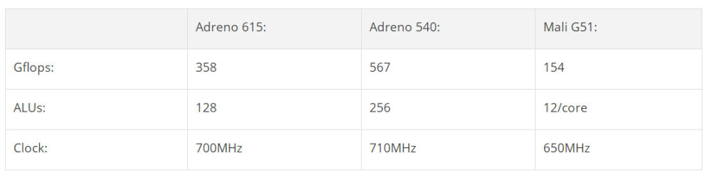670还具有明显的优势,即制造工艺. 与Exynos 7884或Snapdragon 835相比高通670和835,670的制造工艺更为先进. 但是,这种进步并未反映在GPU Adreno 615上,后者受到670能耗的限制.