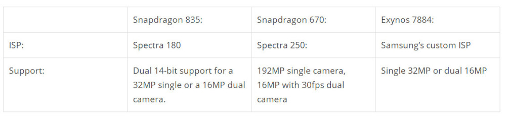 Snapdragon 670与Exynos 7884和Snapdragon 835的对比