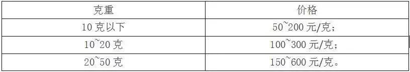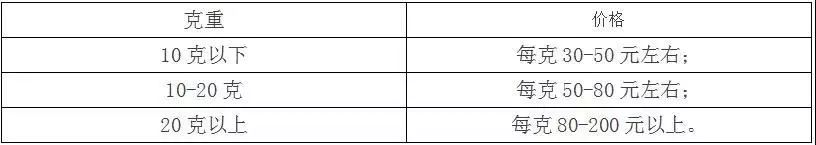 珠宝市场有一个普遍的规则: 尺寸越大,它就越有价值,蜂蜡也是如此. 仅就蜂蜡原石而言蜜蜡的价格,价格差异更为严重,破碎的原石少于10克,而碎石少于100到200克. 毛坯的价格相差近一百倍.