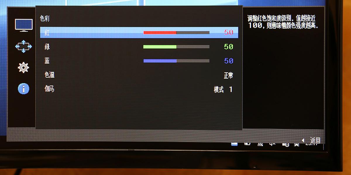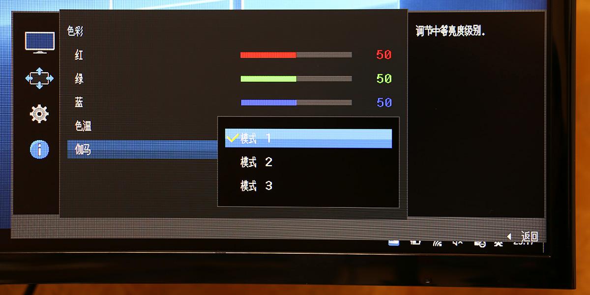 此外,OSD菜单还可以设置RGB三种原色和不同的色温,并且有三种不同的伽玛值可供选择.