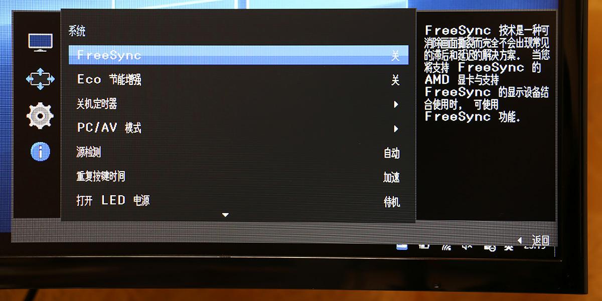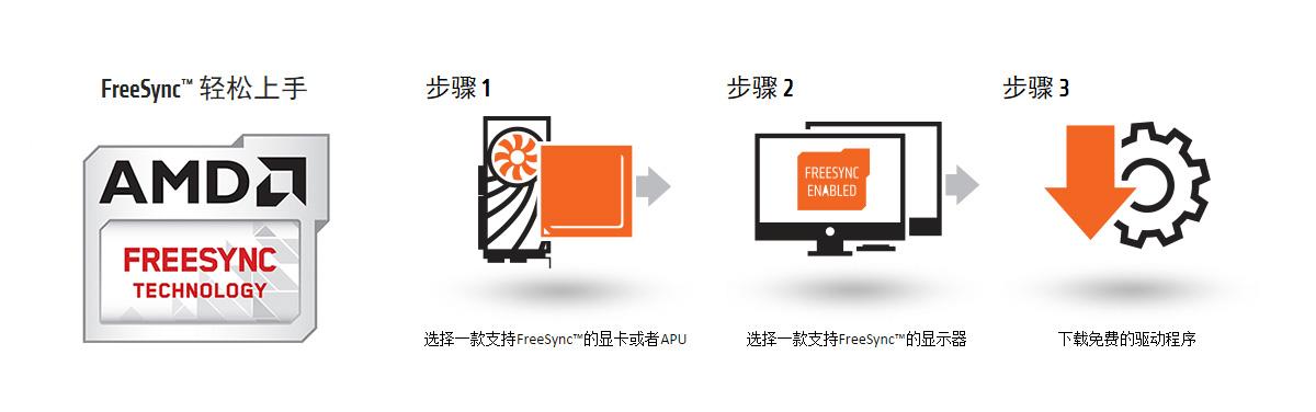 要体验FreeSync技术的效果,除了显示支持外,还需要配备支持FreeSync的图形卡并在OSD菜单中打开此功能.