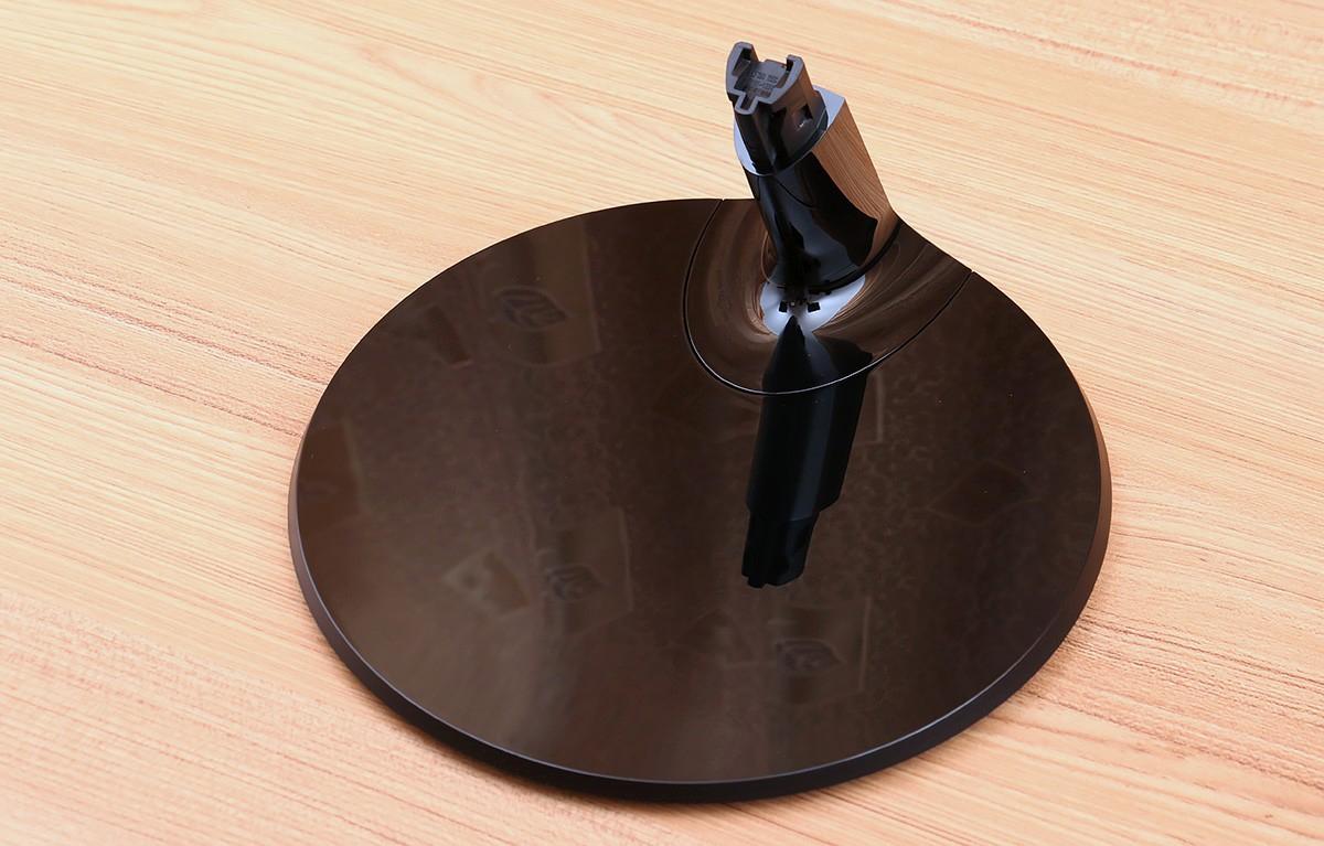 底座和支脚用螺钉固定,支脚和显示器用榫头固定. 底座和支架均为高光注塑成型表面. 尽管包装中包含保护膜,但不应对这种材料进行太粗糙的处理. 如果有轻微的划痕,那就真的很难忍受了.