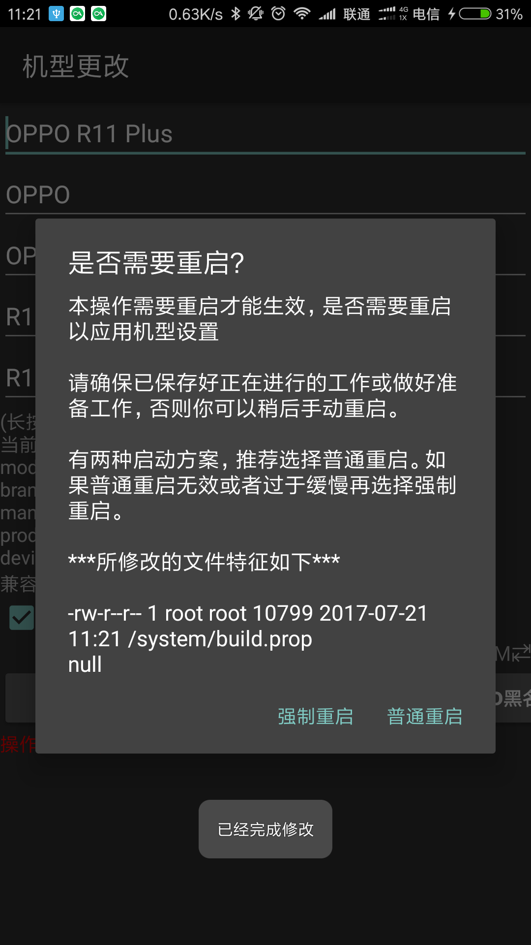 安装模型更改,首先选择导出,导出并保存自己的模型信息,然后选择导入此oppo r11 plus的模型代码(T1BQTyBSMTEgUGx1c0BPUFBPQE9QUE9AUjExIFBsdXNAUjExIFBsdXM =),在左侧(忙框)中有一个选中标记. 编辑
