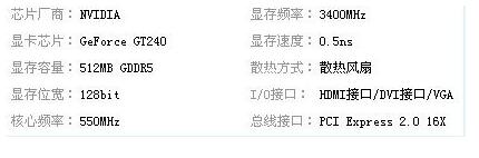 图形卡的参数. 最重要的是图形芯片. 芯片决定显卡的等级. 另一个主要问题是查看: 图形卡的内存和位宽以及核心频率和内存频率. 还应注意的是win10怎么查显卡内存,在散热方面,以前的通用图形内存为512M,位宽为128bit,这些值越大,图形性能越好. 下图中的图形芯片为: GT240,属于当前的低端独立显卡级别. 这是当前流行游戏显卡的示例: