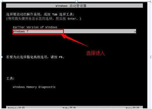 重新启动后,进入任务管理器,在启动选择菜单中选择如下所示的条目.