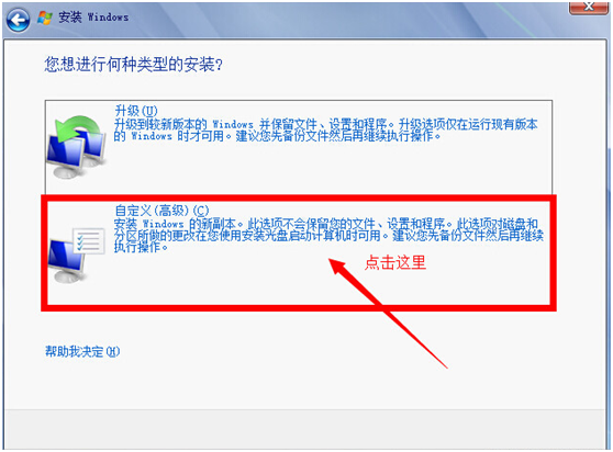 单击下一步进入. 对于新安装联想固态硬盘安装,请单击“自定义(高级)”选项,如下所示: