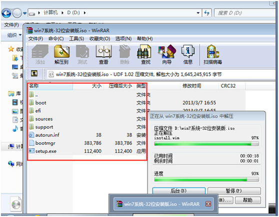将ISO文件解压缩到当前文件夹,即该磁盘,如下所示: