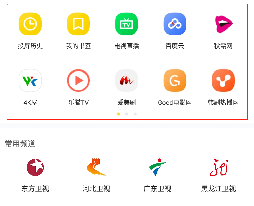 支持资源屏的整个网络,优酷,乐视,芒果,爱奇艺,爱美戏剧,1905电影网,虎牙直播等,在首页上直接提供约20个影视站点,全部支持一键投资屏幕到电视. 还有一个直播电视功能. 无需在电视上安装软件,也可以在此软件中打开直播电视,只需将电视与手机连接即可观看电视.