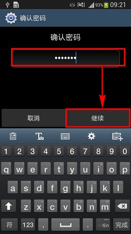 5. 输入您之前设置的屏幕锁定密码,然后单击继续.
