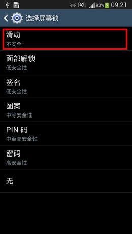 1. 如果您以前曾使用幻灯片解锁过: 设置-(我的设备)-锁定屏幕-请选择其他解锁方法设置.