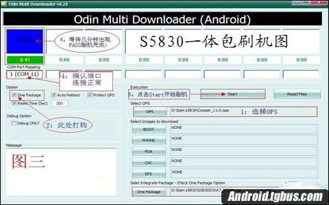 2、按照图上所示,把勾选的都设置好,数据包放好,端口连接正常,就可以开始刷机了。