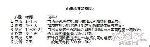 事实上在这个里面,手机集成商是先提需求,然后手机方案开发商们根据这个需求对手机的软件界面进行相关的设计,过程就和上面的一样。方案公司的设计完成之后交付给手机集成商,集成商通过制定好的设计设计样机,完成之后拿给主要的代理商看,之后就是手机的招商和销售了。