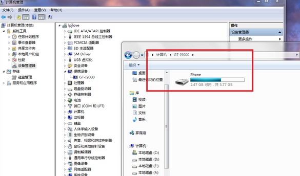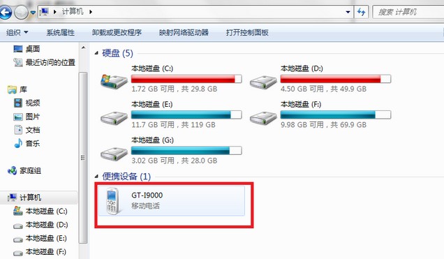 如果正常情况“我的电脑”中会出现“GT-9000”的便携设备,里面是有个“Phone”的存储,此时我们打开kies,一定能与其连接\0成功。