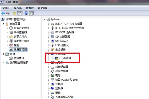 如果“我的电脑”始终没有出现“GT-9000”的便携设备,我们可以打开“设备管理器”,可能会有叹号出现了。连接失败了!
