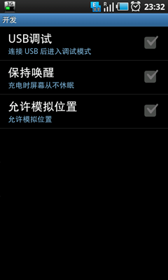 但是在“应用程序”-“开发”中的“USB调试”一定不要选,否则进入调试模式了。
