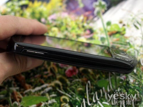 三星I6500U的两侧设计都比较简洁,除了必要的功能键外并没有过多的装饰,这一点还是让人比较满意的。左侧只有两个音量调节键,在按键的中心设计有银色条装饰,让按键没有这么突兀。