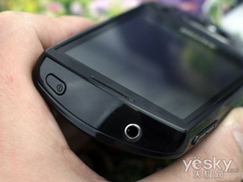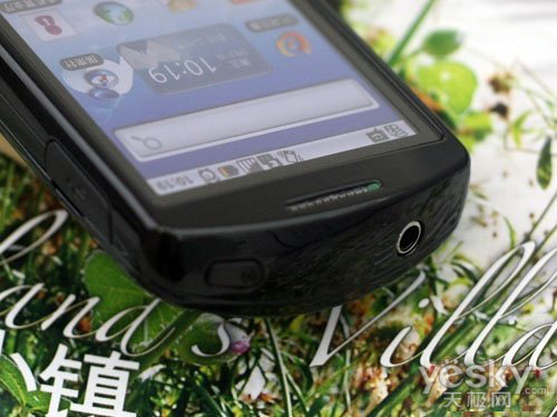 三星I6500U的顶部相当有特色,被设计成了倾斜的样式,所以看起来手机顶部会比较宽大一些。和其他的Android手机一样,电源键被安排在了顶部,通过它,我们也可以进行锁屏操作。