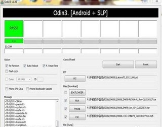 然后点击ODIN工具上的start按钮,这时会自动开始刷机进度条开始走动,需耐心等待几分钟,等Oldin工具显示PASS或RESET。9152三星手机报价现在就可以拔掉数据线。等待手机恢复官方原版系统,正常开机使用。对教程不明白或者不成功的朋友可以查看“解压的五件完整包中的-刷机步骤恢复祥细方法”进行祥细了解。9152三星手机报价