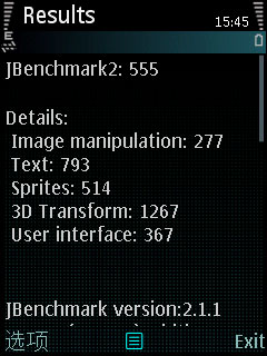 除了配置之外,网友比较关心还是最直接的性能体现。我们为三星i8510c安装了一些常规的测试软件,从安装的情况来看,兼容性方面是没有问题的,网友们也不必担忧这个问题。三星i8510c但是在软件的启动方面i8510c给的感觉就是比较慢,而且JA测试的结果也是比较让人失望,具体的结果如下图。