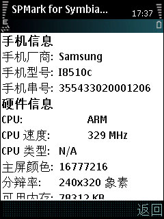 三星i8510c的硬件配置与性能是网友们最为关心的问题了。从SPMark、ACE这样的测试软件来看,三星i8510c处理器的运行频率非常高(329MHz),而开机的运行内存约为78M,比许多主流的N系列S60机型都要高,因此但是从硬件配置来看,三星i8510c是绝对有能力与N系列拼一下的。此外,三星i8510c与N95 8G/N96一样,都是采用了内置大容量内存,配置了与N96一样的16G大容量内存,而且i8510c还同时支持microSDHC大容量储存卡,因此在这方面比较让人放心。